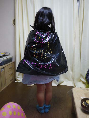 娘の人は、児童館の工作イベントで作ったハロウィン用マントを付けてました。