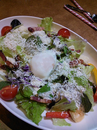 お任せのサラダ。と言ってもいつもシーザーサラダだけど。