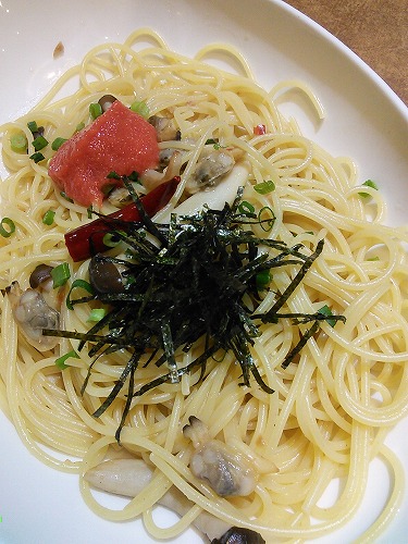 パスタは2人共、あさりと明太子のペペロンチーノにしました。娘の人は唐辛子の辛さは平気らしく、綺麗に完食。ワサビは苦手なのに・・・(´・ω・`)