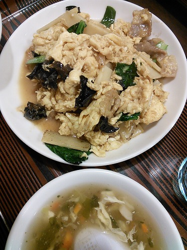 私は、キクラゲと卵の炒め物定食にしました。ご飯減らして貰うの忘れてた・・・orz
