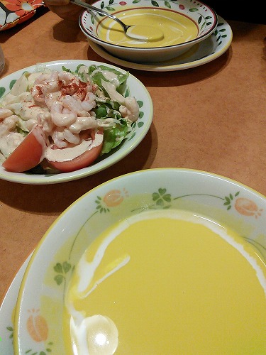 期間限定ということで、冷たいパンプキンスープがメニューに加わっていました。もうそんな季節なのね・・・。