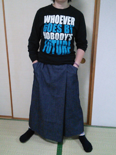 因みにこのパンツを履いて駅の駐輪場の階段を上っていた時に、裾を踏んづけてすっ転びました。皆様お気をつけ下さい(爆)