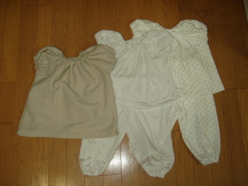 生地は、オカダヤで買った「三猿」がデザインされている手拭いと、格子柄の手拭い。