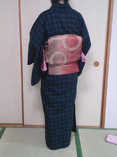 半幅帯でゆるっと気楽に着付け・・・たつもりだったのですが、帯をぎゅーぎゅー締めすぎましたorz