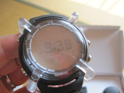 でもスントユーザー曰く「絶対付けておいた方が良い」らしいので、我慢して付けておくことにします。もうちっと文字盤見やすくなれば良いんだけどね。