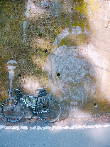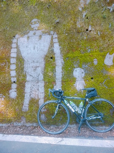 定峰峠と言えば、峠への一本道の間にどなたかが描いたジブリ作品の苔アートがありまして、ちょいとした撮影スポットになっております。これはカオナシ。千と千尋見たことないんだけど(爆)
