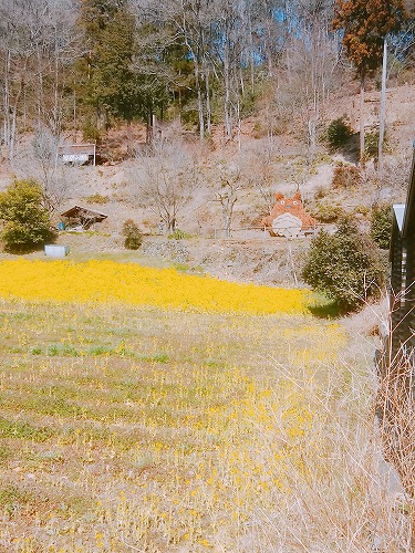 途中で見かけた菜の花畑とトトロ。あなたトトロって言(ry